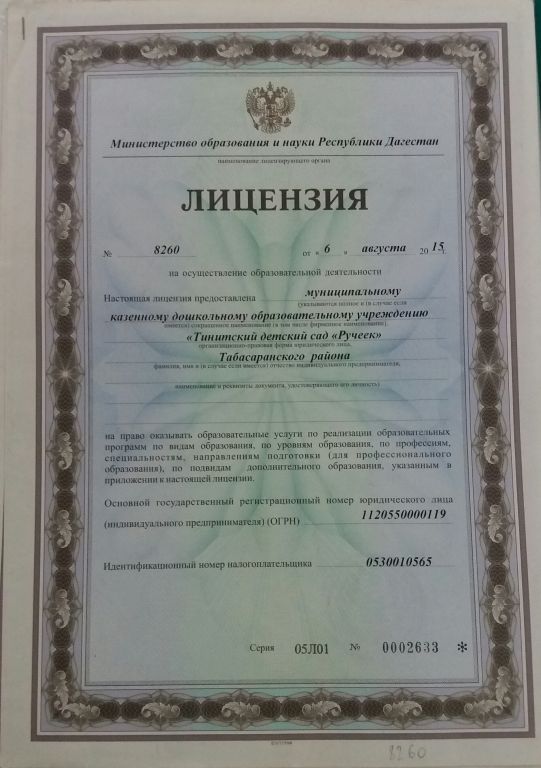 | Полное наименование образовательной организации* | Муниципальное казенное дошкольное образовательное учреждение "Тинитский детский сад"Ручеек" |